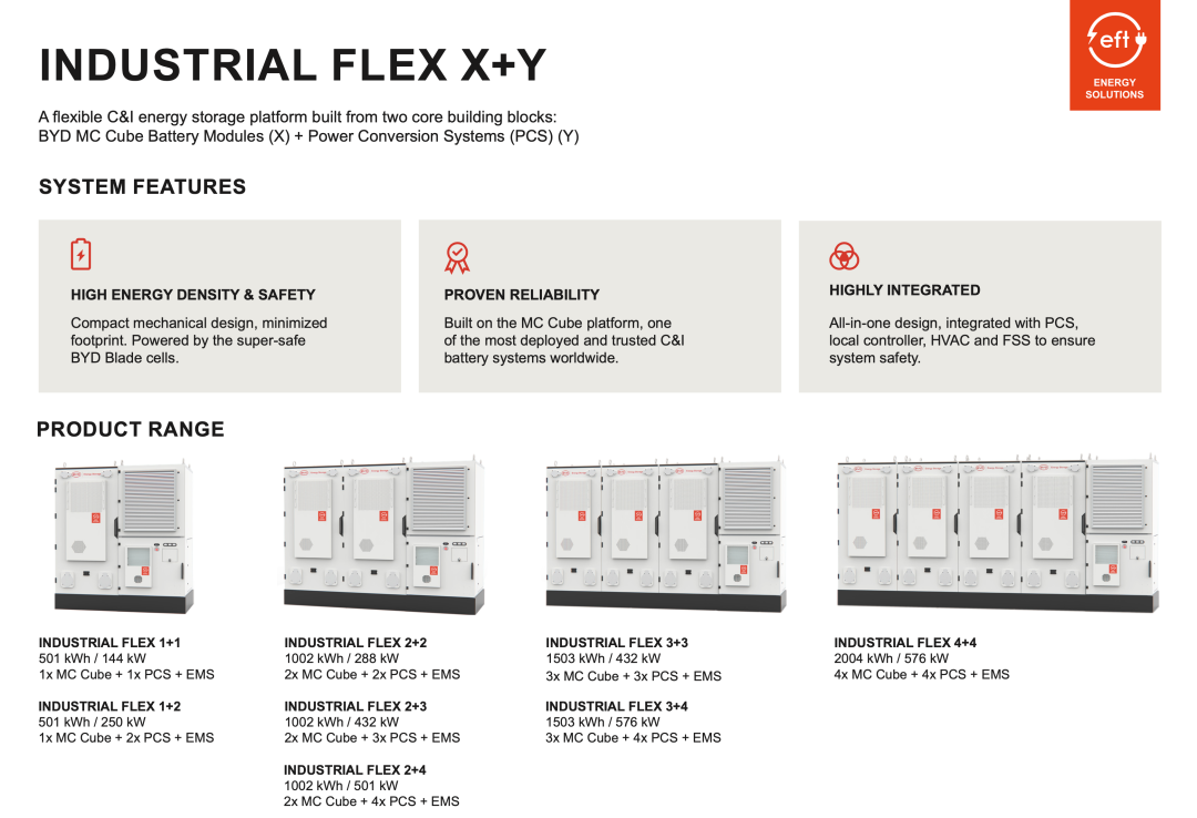 中國(guó)儲(chǔ)能網(wǎng)訊:近日,歐洲儲(chǔ)能企業(yè)EFT Energy Solutions近日正式發(fā)布其面向工商業(yè)儲(chǔ)能市場(chǎng)的全新解決方案——Industrial Flex。