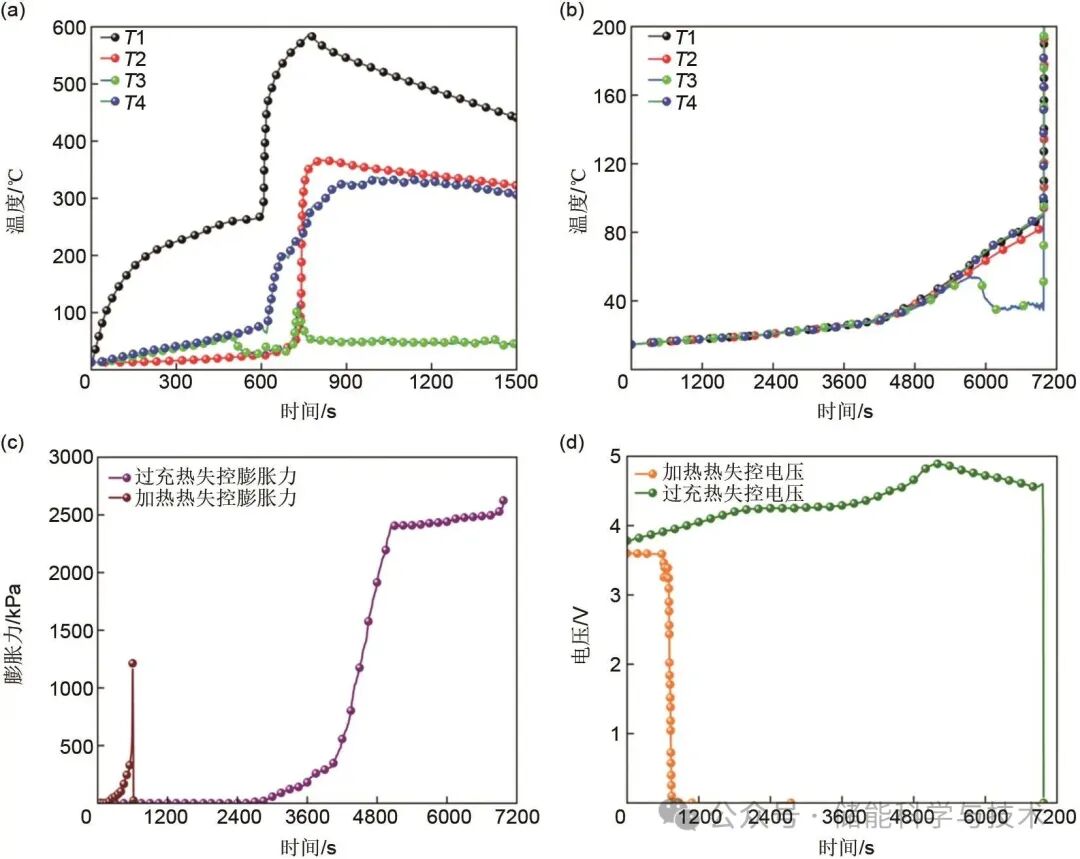 本研究系統(tǒng)性地比較分析了標(biāo)稱容量為185 Ah的大容量鈉離子電池在加熱和過(guò)充兩種不同濫用條件下的熱失控行為特性。實(shí)驗(yàn)結(jié)果表明:
