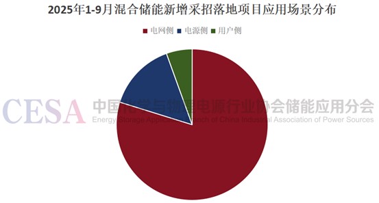 具體到應(yīng)用場景,2025年1月到9月的混合儲能招投標項目中,電網(wǎng)側(cè)項目以87項的規(guī)模占據(jù)領(lǐng)先優(yōu)勢,占比超過80%。該場景主要應(yīng)對電網(wǎng)調(diào)峰調(diào)頻、輸配電擴容以及新能源消納優(yōu)化等復(fù)雜需求,與混合儲能的應(yīng)用優(yōu)勢完美契合。