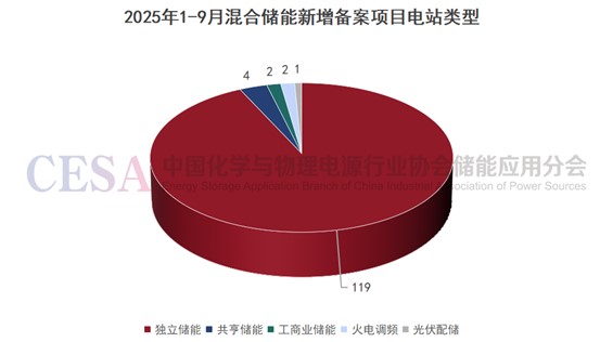從電站類型來看,在1月到9月新增備案的混合儲能項目中,獨立儲能以119項的數(shù)據(jù)優(yōu)勢占據(jù)主導(dǎo)地位,成為推動混合儲能規(guī)?;l(fā)展的核心力量。這表明市場高度認可獨立儲能技術(shù)的成熟度和經(jīng)濟性,也體現(xiàn)了其在電網(wǎng)調(diào)峰、新能源消納等場景中不可替代的作用。