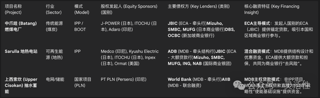 國(guó)際商業(yè)銀行,特別是日本三大銀行(Mizuho, SMBC, MUFG)和新加坡銀行(DBS, OCBC),是印尼大型項(xiàng)目融資銀團(tuán)的主力。然而,它們的參與是高度依賴MDBs和ECAs所提供的“風(fēng)險(xiǎn)保護(hù)傘”的。