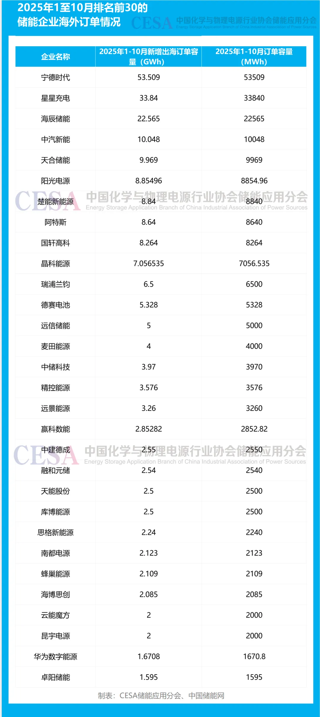 海外市場(chǎng)的巨大潛力也給國(guó)內(nèi)儲(chǔ)能企業(yè)帶來(lái)了可觀的訂單。根據(jù)CESA儲(chǔ)能應(yīng)用分會(huì)數(shù)據(jù)庫(kù)的不完全統(tǒng)計(jì),2025年1-10月中國(guó)企業(yè)新增儲(chǔ)能出海訂單/合作達(dá)267GWh,已遠(yuǎn)超去年全年,同比增長(zhǎng)145.6%。