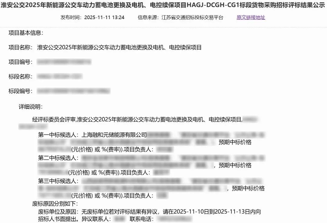 中國儲能網(wǎng)訊:當能源轉(zhuǎn)型與綠色發(fā)展深度交織,公共交通的綠色升級正成為城市低碳轉(zhuǎn)型的重要一環(huán)。作為以儲能為核心的全球領先零碳能源運營商,融和元儲在綠電交通領域再傳捷報,成功中標淮安公交2025年新能源公交車動力蓄電池更換及電機、電控續(xù)保項目,將為淮安公交400輛公交車提供全方位的能源保障與服務支持。