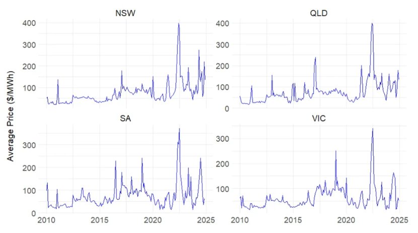 澳大利亞電力批發(fā)市場的價格波動性、平均水平及結(jié)構(gòu)性變化,成為電力零售成本上漲的直接推動力。