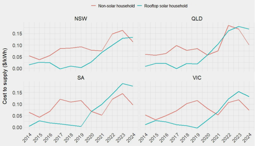澳大利亞屋頂太陽能的普及與可調(diào)度發(fā)電資源的退出,分別從電網(wǎng)成本分?jǐn)偤褪袌隽鲃有詫用?,間接抬高系統(tǒng)風(fēng)險和零售電價。