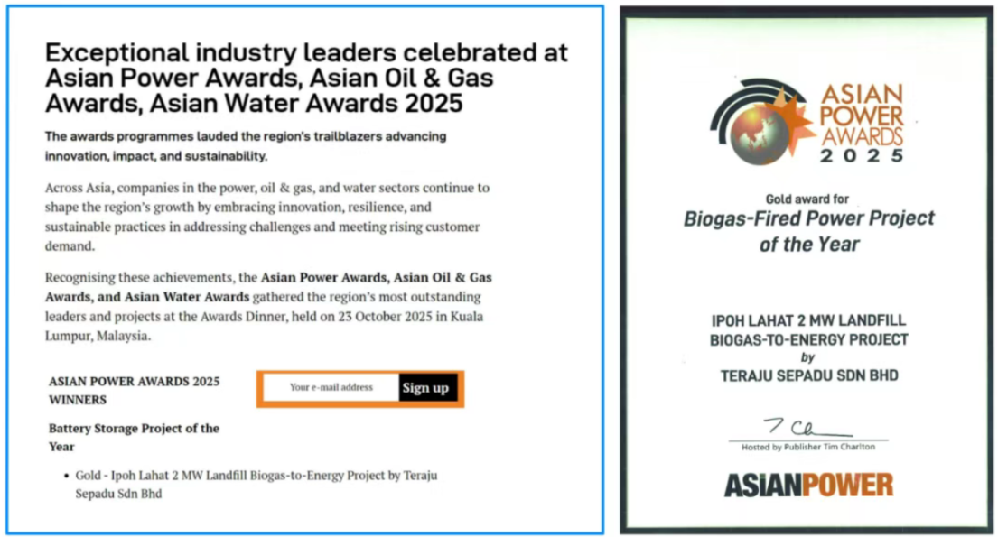 業(yè)績承壓,百川要破局轉(zhuǎn)型,于是將目光投向海外,借助電價市場化程度高的地區(qū),快速落地沼氣與光伏項目。從哥倫比亞科爾多瓦省的光伏電站,到馬來西亞怡保的2MW沼氣項目(榮獲2025年亞洲電力獎“年度沼氣發(fā)電項目金獎”),百川的出海步伐穩(wěn)健而有力。