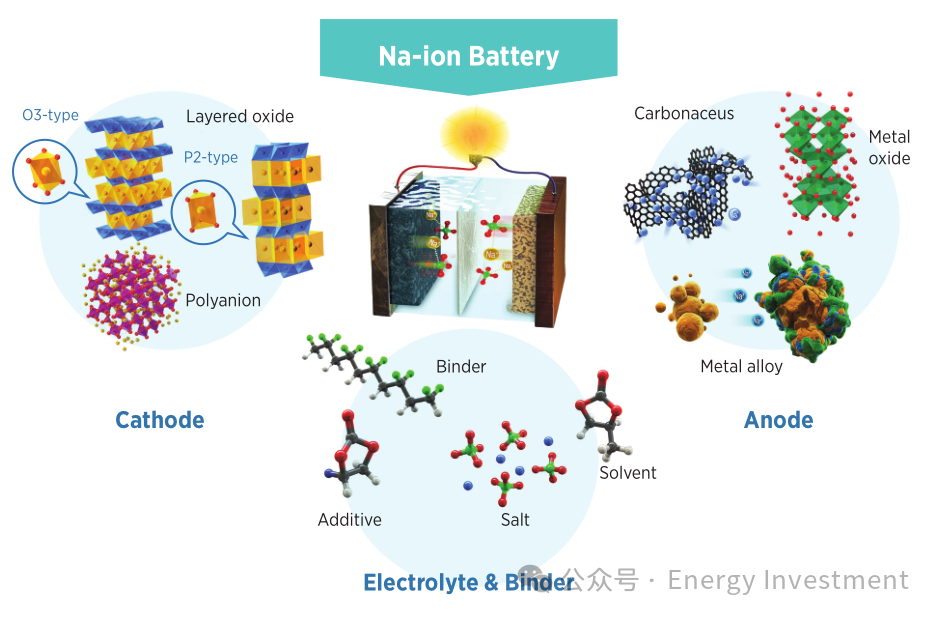 正極(Cathode):儲(chǔ)存鈉離子的關(guān)鍵材料,是決定電池能量密度、電壓和成本的核心。
