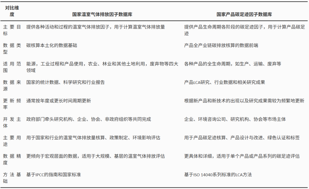 表1 國家溫室氣體排放因子數(shù)據(jù)庫和產品碳足跡因子數(shù)據(jù)庫的關系分析