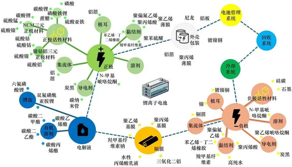 注:考慮到鋰電池生產的多樣性與復雜性,本圖僅示意主要材料組成。