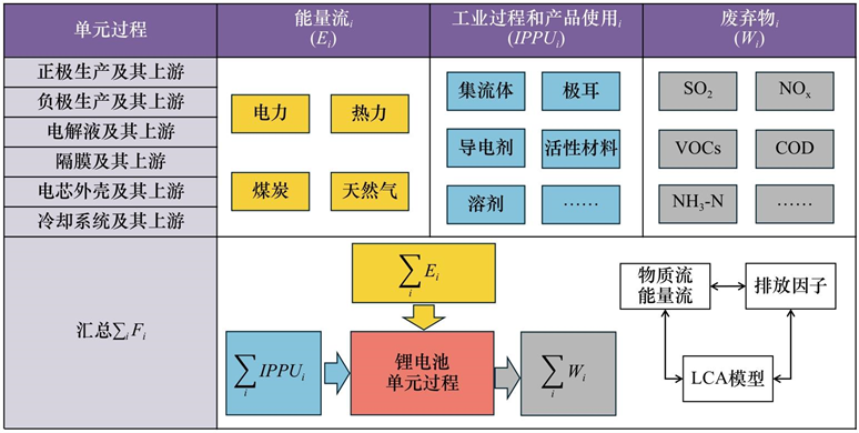 圖4 支撐鋰電池碳足跡核算的物質流與能量流分析示意