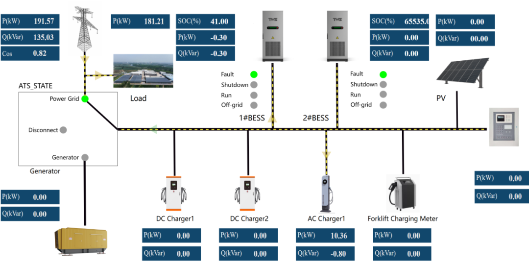 1.提升經(jīng)濟(jì)性:光伏自發(fā)自用、余電存儲,減少對電網(wǎng)依賴;儲能系統(tǒng)實現(xiàn)削峰填谷,降低尖峰電費;柴油發(fā)電機(jī)僅作為后備,顯著降低用能與燃料成本。