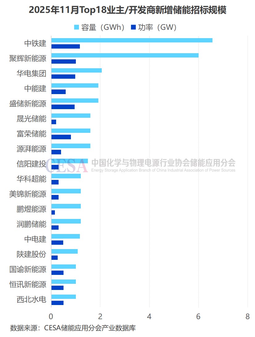 就2025年11月儲(chǔ)能(含直流側(cè)設(shè)備)新增招標(biāo)業(yè)主/開(kāi)發(fā)商分析,中鐵建新增招標(biāo)規(guī)模高達(dá)1.165GW/6.56GWh,位居全國(guó)榜首。