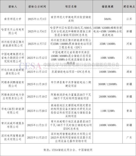 表 2025年11月新增構(gòu)網(wǎng)型儲(chǔ)能招標(biāo)項(xiàng)目