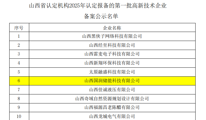 中國(guó)儲(chǔ)能網(wǎng)訊:12月8日,全國(guó)高新技術(shù)企業(yè)認(rèn)定管理工作領(lǐng)導(dǎo)小組辦公室發(fā)布了山西省2025年認(rèn)定報(bào)備高新技術(shù)企業(yè)備案公示,山西國(guó)潤(rùn)儲(chǔ)能科技有限公司順利通過(guò)“國(guó)家高新技術(shù)企業(yè)”認(rèn)定,此次通過(guò)標(biāo)志著公司連續(xù)兩次獲得高企認(rèn)定,充分體現(xiàn)了國(guó)潤(rùn)儲(chǔ)能在研發(fā)體系構(gòu)建、知識(shí)產(chǎn)權(quán)布局與成果轉(zhuǎn)化能力等方面持續(xù)獲得國(guó)家層面的認(rèn)可與支持。