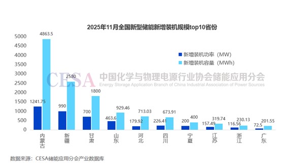 從各省份新增裝機規(guī)模來看,11月共有21省份新增投運新型儲能項目,多個省份新增裝機規(guī)模達到GWh級別。