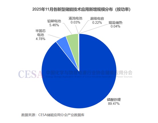 儲能技術路線方面,11月新增投運儲能項目中,磷酸鐵鋰儲能技術并網(wǎng)總功率占比達89.47%,繼續(xù)保持主導地位。