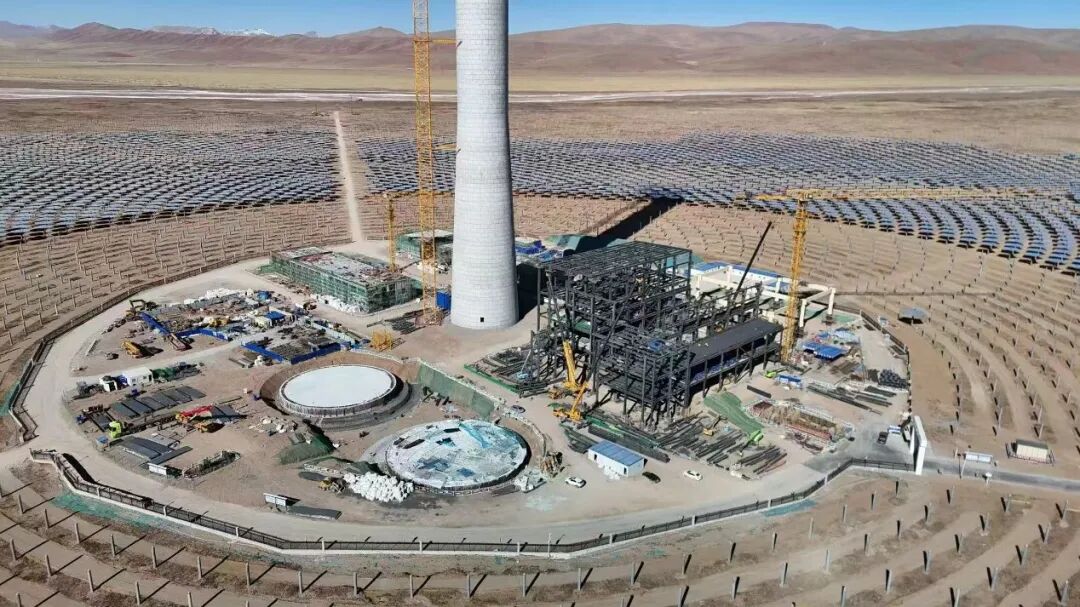 安多土碩光熱項(xiàng)目共配置15927面定日鏡,工人正在緊張有序地進(jìn)行安裝,計(jì)劃于明年3月搭建完畢,塔頂吸熱器擬于明年4月安裝完成。