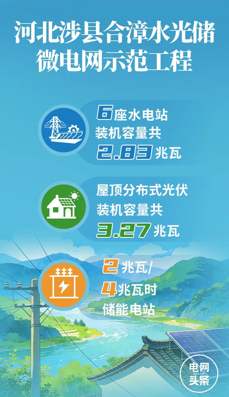 董紅亮口中的智能微電網(wǎng),是2023年國網(wǎng)河北電力圍繞新型電力系統(tǒng)建設,結(jié)合當?shù)刈匀毁Y源稟賦,在涉縣合漳鄉(xiāng)試點開展的河北首個十兆瓦級水光儲智能微電網(wǎng)示范工程。該工程利用當?shù)刎S富的光伏發(fā)電、水電資源,通過優(yōu)化電網(wǎng)結(jié)構(gòu),自主開發(fā)水光儲能量管理系統(tǒng),構(gòu)建“水-光-儲”一體化控制架構(gòu),推動綠色電力與新型儲能系統(tǒng)協(xié)同互動。2024年4月,工程建成投運,如今,合漳微電網(wǎng)已穩(wěn)定運行一年多了。