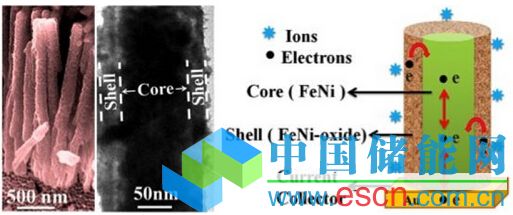 來自印度S.N. Bose國家基礎(chǔ)科學(xué)研究中心的兩位學(xué)者研發(fā)出了一種超級電容器,它的電極結(jié)構(gòu)比較特殊,外殼層是由氧化鎳與氧化鐵組成的復(fù)合材料,內(nèi)部包裹著導(dǎo)電性良好的鐵鎳合金。