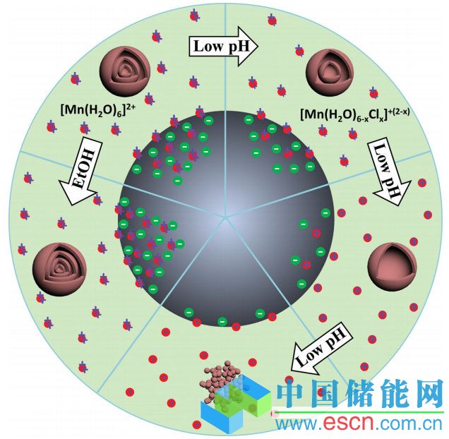 不同吸附條件下合成Mn2O3納米顆粒以及多殼層空心球的機(jī)理示意圖