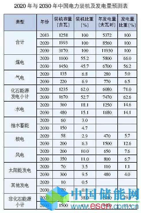 結(jié)合能源革命的要求,經(jīng)過綜合分析,作者提出2020年底及2030年底中國電力裝機(jī)結(jié)構(gòu)和發(fā)電量結(jié)構(gòu)的估計,見表。
