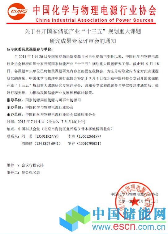 關(guān)于召開(kāi)國(guó)家儲(chǔ)能產(chǎn)業(yè)“十三五”規(guī)劃重大課題研究成果專(zhuān)家評(píng)審會(huì)的通知
