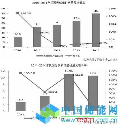 在政策拉動(dòng)下,我國(guó)光伏市場(chǎng)連續(xù)兩年保持了10GW以上的增長(zhǎng)速度。2014年新增光伏裝機(jī)量達(dá)到10.6GW,其中分布式光伏系統(tǒng)2.05GW,占總裝機(jī)量的19.3%,同比提高13個(gè)百分點(diǎn)。累計(jì)光伏并網(wǎng)裝機(jī)容量28.05GW,光伏年發(fā)電量約250億千瓦時(shí),同比增長(zhǎng)超過(guò)200%。除傳統(tǒng)的專注于發(fā)電功能的大型地面電站與屋頂電站,2014年水光互補(bǔ)電站、農(nóng)業(yè)大棚、漁光互補(bǔ)電站等多種電站形式持續(xù)推進(jìn),光伏發(fā)電在其他行業(yè)領(lǐng)域中的應(yīng)用不斷拓展,融合發(fā)展趨勢(shì)明顯。同時(shí),光伏應(yīng)用產(chǎn)品更加豐富。