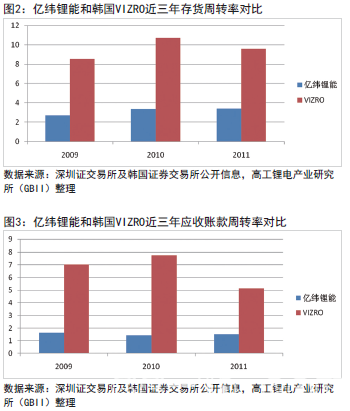 億緯鋰能在資產(chǎn)利用率方面要遠(yuǎn)低于與公司業(yè)務(wù)相近的韓國VIZRO CELL公司,主要體現(xiàn)在存貨周轉(zhuǎn)率與應(yīng)收賬款周轉(zhuǎn)率兩個方面。