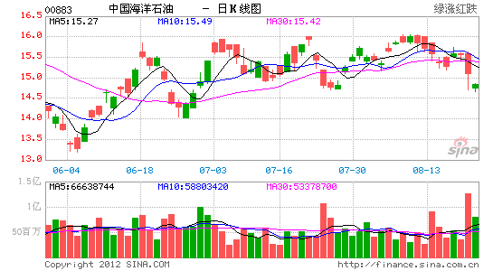 8月21日,中海油公布了2012年半年報,由于業(yè)績下降近兩成,遜于部分券商機構(gòu)的預測,導致昨日多家券商紛紛下調(diào)對中海油的評級。受此影響,其股價因此下跌1.72%。