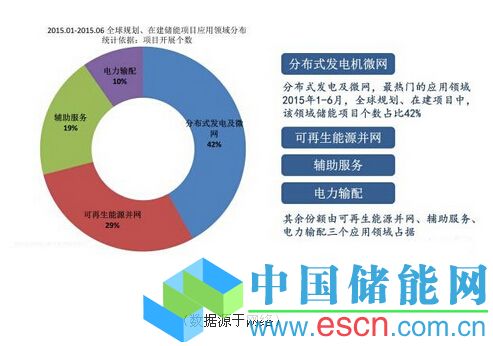 從應用分布來看,上半年的應用熱點是分布式發(fā)電及微網(wǎng),其項目數(shù)量占規(guī)劃及在建項目總數(shù)的42%。其次是可再生能源并網(wǎng),輔助服務和電力輸配領(lǐng)域。