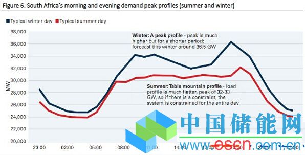 圖:南非夏冬兩季早晚用電高峰的電力需求對比