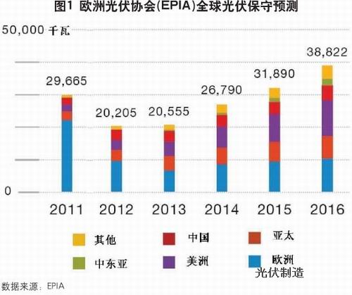 從2012年全球光伏市場需求來看,目前絕大多數(shù)機構(gòu)的預測是保守的。由于歐洲債務(wù)危機還在發(fā)酵,新興的美國市場受到美國商務(wù)部裁決的影響,增長的勢頭可能不如預期。歐洲光伏協(xié)會(EPIA)的保守估計2012年全球光伏安裝量大約為20GW, 和2011年相比下降約32%(圖1)。市場也許會重演一些奇跡(如以前發(fā)生在西班牙、意大利的奇跡),但至少到目前為止,預示奇跡的“靈光”還沒有出現(xiàn)在地平線上。中國和印度也許是下一個奇跡發(fā)生的地方,但中國市場即使今年突破性地達到5-6GW的安裝規(guī)模也無法完全抵消歐洲市場的衰退對中國廠商帶來的沖擊。有些機構(gòu)看好印度,認為那里的安裝會突破7GW。印度2011年大約安裝了0.6GW,今年安裝7GW等于是“大躍進”。不過我看不出在印度人的血液和它們的官僚經(jīng)濟體系中有那種中國式“大躍進”的“沖動”基因。