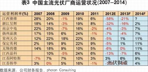 中國絕大多數(shù)多晶硅廠商前景暗淡,那么硅片、電池片、模組等下游廠商的狀況又如何呢?從去年第二、三季度開始,中國主流的光伏廠商的運營就已經(jīng)開始出現(xiàn)赤字,而且虧損的嚴重程度在不斷加劇。更為令人不安地是,這些公司的運營狀況有可能要一直等到2014年才能有所改善(表3)。中國公司在經(jīng)歷了2009年的低潮之后,托歐洲市場之福,2010年經(jīng)營狀況大幅改善。但盲目地擴大產(chǎn)能、一味追求“高大全”的垂直整合模式迅速導致了全球產(chǎn)能的過剩,這不但在歐美引起了一片抵制中國公司和產(chǎn)品的雜音而且最終還危及了中國公司本身的盈利能力。這大概是再次印證了近20年來制造業(yè)的一個“中國現(xiàn)象”—不管什么東西,如果中國人能夠大規(guī)模地制造了,結(jié)果很快變得大家都沒錢賺。反過來講,這大概也算是中國對世界的貢獻吧。用一些中國光伏企業(yè)老總自己的話來講,中國人是在(全世界)開拓一個廉價的平民光伏時代。不過我懷疑一旦這個廉價光伏時代真的來了,現(xiàn)在的很多開拓者都將被列入“先烈”的名單了,而未來的市場主宰者將是非常另類的公司。我沒有“水晶球”來透析未來,但目前的市場數(shù)據(jù)表明,中國70-80%的光伏公司在未來2-3年里將難以為繼,大量過剩的產(chǎn)能將被浪費,以換取利潤的回升,這樣少數(shù)的幸存者才可以在一個“廉價光伏時代”里繼續(xù)偷生。