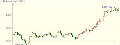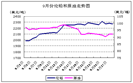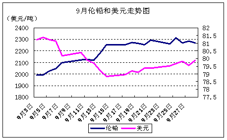 2012年9月份,倫鉛一路上揚(yáng),截至本月收盤較上月上漲306美元,漲幅15.58%,最高觸及2322美元,最低1956美元,本月報收2270美元,是近一年來最大的單月漲幅。