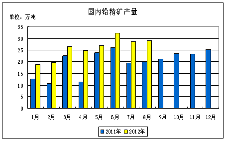 (1)國內(nèi)鉛精礦產(chǎn)量
