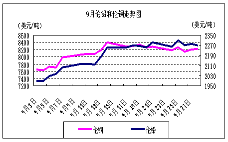 9月份,倫銅總體上以震蕩上行而后高位小幅回落為主,中旬以前受助于量化寬松推動,節(jié)節(jié)攀升,最高漲幅達(dá)10.3%;不過下旬以后因其自身基本面不足開始展開高位回調(diào),幅度2.1%,總體上,偏好情緒為主基調(diào)。但是中國需求不是很樂觀,對銅價長效支撐不夠,因此,高位回落乃勢在必然。另外,投機(jī)資金高位繼續(xù)撤離銅市,因此對整個金屬市場人氣的影響稍微不利。銅價10月能否維持較強(qiáng)走勢關(guān)鍵還在于需求前景,另外,中日最近升級的釣魚島事件或?qū)︺~需求構(gòu)成不利,且需密切關(guān)注10月公布的重要經(jīng)濟(jì)數(shù)據(jù)對其影響。