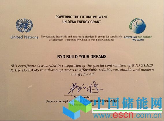 比亞迪榮獲“聯(lián)合國能源特別獎”