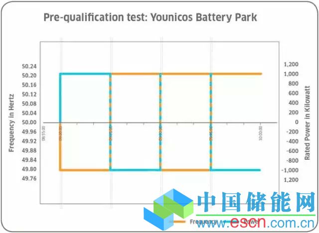 第二張圖展示了Younicos的儲能電池在應對變化時的反應??梢钥吹絻δ茈姵氐恼{(diào)頻過程會更加及時,準確性也得到了極大的提高。