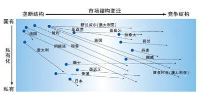 大致而言,電力工業(yè)生產(chǎn)關(guān)系總的變革軌跡是從私有、自由發(fā)展、小地域壟斷,到國有、全面管制、大地域壟斷,再到私有、部分管制、大地域競爭。但是各個國家又各有一些差異,第一輪的國有化運(yùn)動,主體在歐洲,美日等國沒有國有化,但所有的國家都無一例外地對電力工業(yè)執(zhí)行政府干預(yù)、全面管制,實(shí)施特許專營,所以其一個共同的結(jié)果就是電力商品屬性的湮沒。第二輪的自由化運(yùn)動,主題詞是放松管制、交易市場化、價格自由化,私有化只能算是一個附加選做題。