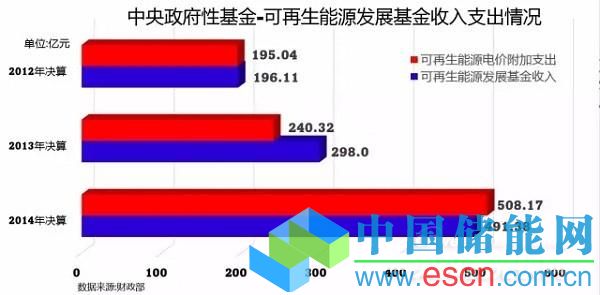 2014年中央財(cái)政可再生能源發(fā)展基金收入的基金只有不到500億元的規(guī)模,相比高速增長的可再生能源裝機(jī),基金的缺口越來越大。
