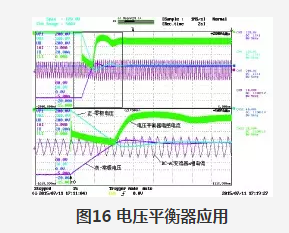 在t0時刻電壓平衡器投入工作,從圖中可以明顯看到,直流微電網(wǎng)正—零極和負(fù)—零極間的電壓能夠迅速實(shí)現(xiàn)平衡,有效提高三線制直流微電網(wǎng)的供電電能質(zhì)量。圖16所示實(shí)驗(yàn)結(jié)果表明電壓平衡器在雙極三線制直流微電網(wǎng)不平衡電壓控制中具有良好的應(yīng)用前景。