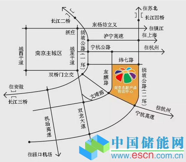 南京眾彩農(nóng)副產(chǎn)品物流配送中心總占地面積3000畝,規(guī)劃總建筑面積107萬m2,是南京城市居民農(nóng)副產(chǎn)品消費、農(nóng)產(chǎn)品交易平臺,現(xiàn)代化農(nóng)副產(chǎn)品物流基地,供電可靠性要求較高(地理區(qū)位圖見圖5)。目前,區(qū)內(nèi)已接入裝機容量達(dá)6.18MWp的分布式屋頂光伏以及5MW的填埋氣發(fā)電等可再生能源發(fā)電。區(qū)內(nèi)已投運的用電負(fù)荷主要包含有農(nóng)副產(chǎn)品物流區(qū)、交易和展示區(qū)、冷庫區(qū)以及商務(wù)辦公、商業(yè)服務(wù)、酒店餐飲娛樂、濱水娛樂中心等業(yè)態(tài),負(fù)荷性質(zhì)多樣。