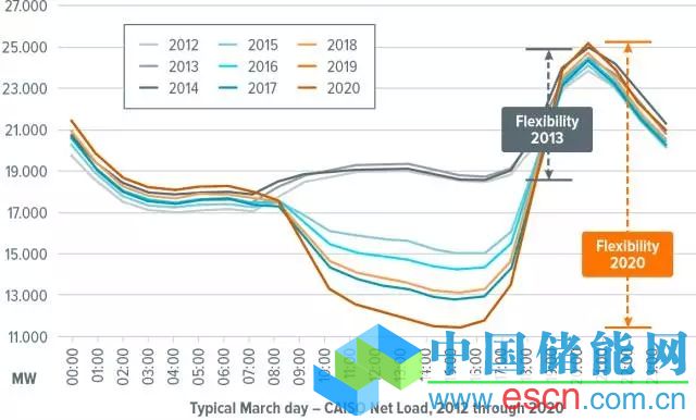 圖1. 加州2012-2020年每年3月某天的負(fù)荷曲線