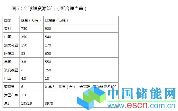 圖5:全球鋰資源統(tǒng)計(jì)(折合鋰當(dāng)量)