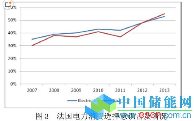 市場意識的培育除了有政府或電力主管部門外,也可以是最先進入的新型零售商來推進,但通常都需要投入一定的成本和時間。例如,美國德州公共事業(yè)管理委員會(PUC)在電力零售市場建立的初期就“前期電力消費選擇意識”的普及做了很多工作,向用戶宣傳德州電力零售市場的基本情況和用戶關(guān)注的問題,并組織開發(fā)了PowerToChoose.com網(wǎng)站,以方便用戶查詢不同零售商的信息、不同售電方案,也可在線便捷地轉(zhuǎn)換零售商。PUC從1999年開始普及工作,措施得當(dāng),推動有力,成效顯著,2000年德州居民用戶普及率達(dá)15.3%,2001年3月這一數(shù)字上升到23.3%,而到2001年8月上升到34.3%,2002年8月達(dá)到62%;2002年,德州商業(yè)用戶有55.2%表示熟知售電側(cè)開放競爭。德州電力消費選擇意識普及的案例在國際上是成功的個案,背后需要有強大的政策、專業(yè)團隊和資金的支持。而國際上大多數(shù)國家售電側(cè)普及進展都不盡人意。法國2000年開始放開20%的大用戶進入市場,2007年放開全部用戶,此時用戶的普及率才35%左右,2007-2013年期間進一步開展推廣工作,7年的普及效果是法國熟知售電側(cè)放開競爭的用戶比例僅從35%上升到53%(詳見圖3)。