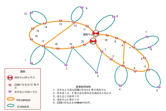 圖6 電力城域傳送網(wǎng)典型組網(wǎng)圖