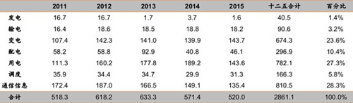 從建設(shè)進(jìn)度和投資規(guī)模來(lái)看,變電、配電及用電三個(gè)細(xì)分領(lǐng)域較好,其中,用電“智能化”將投資782.1億,占總投資的27.3%,是投資最大也是最成熟的環(huán)節(jié),主要是由于用電信息采集系統(tǒng)和電動(dòng)汽車充電基礎(chǔ)設(shè)施建設(shè)將在“十二五”期間大量普及推廣。國(guó)網(wǎng)最新規(guī)劃未來(lái)五年新建電動(dòng)汽車充換電站2900座和充電樁54萬(wàn)個(gè),投資規(guī)模達(dá)到600億元。這個(gè)建設(shè)規(guī)模比之前《國(guó)家電網(wǎng)公司"十二五"智能化規(guī)劃》中新建904座充換電站和23.3萬(wàn)個(gè)充電樁的規(guī)模超2倍。調(diào)度系統(tǒng)是電網(wǎng)智能化的核心。2015年前,國(guó)家電網(wǎng)系統(tǒng)省級(jí)以上調(diào)度機(jī)構(gòu)調(diào)度技術(shù)支持系統(tǒng)全面改造和升級(jí)為智能電網(wǎng)調(diào)度技術(shù)支持系統(tǒng),完成70%地調(diào)、40%縣調(diào)智能電網(wǎng)調(diào)度技術(shù)支持系統(tǒng)建設(shè)工作,總的投資規(guī)模達(dá)166億元。