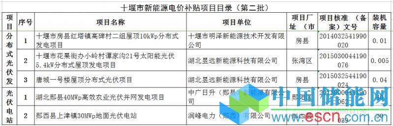 附件:十堰市新能源電價補貼項目目錄(第二批)