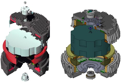 我們將看到此次產(chǎn)品的飛輪與以往相比有很大變化。眾所周知,飛輪儲能UPS由輸入保險、輸入接觸器、靜態(tài)開關(guān)、在線電感器、輸出接觸器、逆變器、濾波電感器、飛輪、旁路等組成。Active Power UPS核心技術(shù)為飛輪儲能技術(shù),擁有35項美國專利。飛輪和電機系統(tǒng)密封在真空容器內(nèi),能量蓄滿時飛輪轉(zhuǎn)速高達7700r/min。以往飛輪轉(zhuǎn)子重達600磅,高4”,直徑25”,如圖1所示