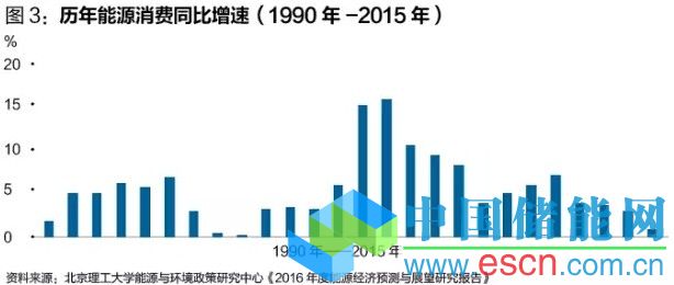 從2012年開始,中國(guó)能源消費(fèi)增速就屢創(chuàng)新低。2015年的能源增速之低,出乎所有人的意料。去年全國(guó)能源消費(fèi)總量43億噸標(biāo)煤,同比增長(zhǎng)不足1%,創(chuàng)下了自1999年以來(lái)的最低增速。